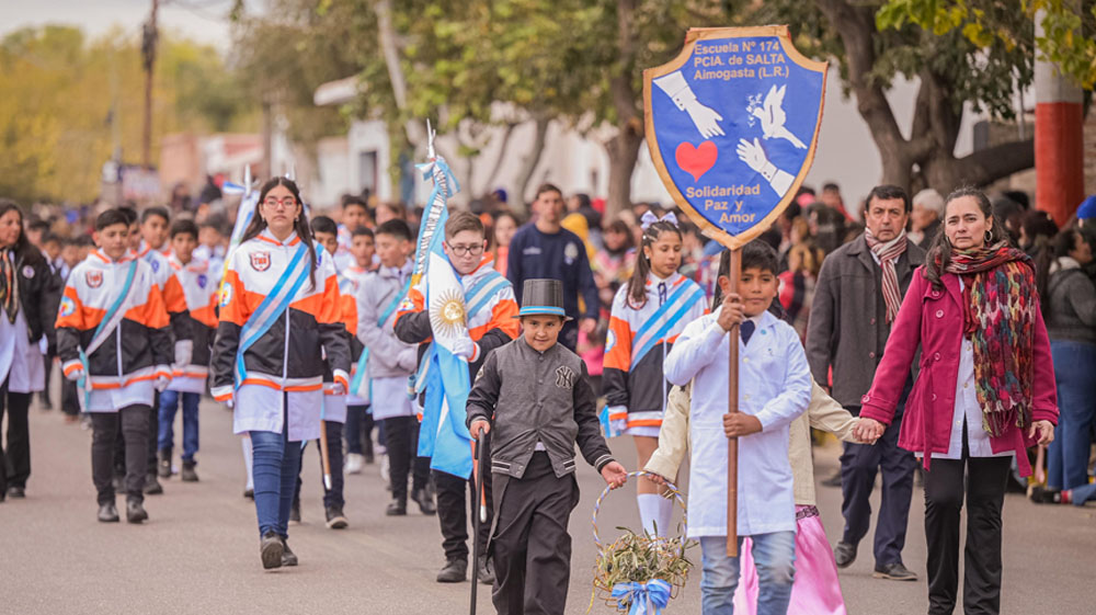 Finalmente, el gobernador dijo: “Les quiero pedir que no bajemos los brazos, (…) entre todos unirnos y marcar el camino de la resolución de las dificultades, y transitar ese camino con esfuerzo, con sacrificio pero alcanzar los objetivos que nos propusimos que es la felicidad del pueblo y la grandeza de nuestra Patria”.