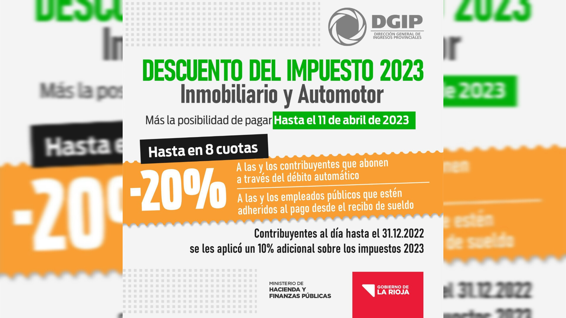 Además, indicó que los contribuyentes que estén al día con el pago hasta el 31 de diciembre del año 2022, el sistema aplicará un 10 % adicional sobre los impuestos del año 2023.