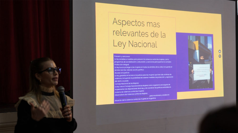 A continuación, la directora de Políticas Públicas e Integración del área de la Mujer y Diversidad, Estefanía Bazán comentó que la capacitación, que será de cuatro encuentros, está destinada a aportar conceptos teóricos sobre la normativa legal, con oradores de distintas funciones del estado.