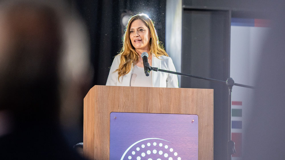 Durante el acto central, la vicegobernadora riojana indicó: “esta tierra que llamamos tierra federal, es por ley nacional 27.300, llamada el kilómetro Cero del Federalismo” y “contarles que esta Rioja que alberga a más de 420 mil almas que tienen sueños, que tienen proyectos, con una superficie de aproximadamente 89.600 kilómetros cuadrados, con una geografía heterogénea, diversa, y que nos lleva a cerros hermosos, pero también a los llanos que nos desafían todos los días en ideas para poder llevar adelante los proyectos y desarrollarlos”.