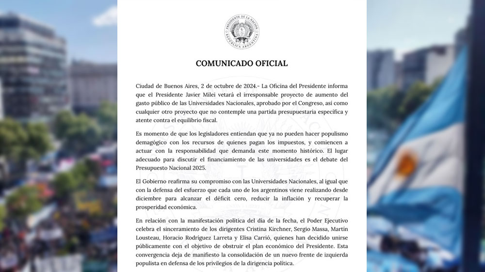 Más temprano, el titular de la cartera de Justicia afirmó que durante la administración del expresidente Alberto Fernández, la Universidad Nacional Madres de Plaza de Mayo recibió $1.500 millones y “solo un 0,62% de los alumnos se recibieron entre 2020 y 2023. Cada uno nos salió $100.000.000”.