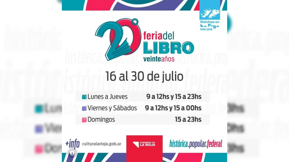 Te presentamos el cronograma de actividades de 20º Edición de la Feria del Libro