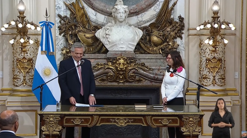 El presidente Alberto Fernández le tomó esta tarde juramento en un acto que se llevó a cabo en el Salón Blanco de la Casa Rosada.