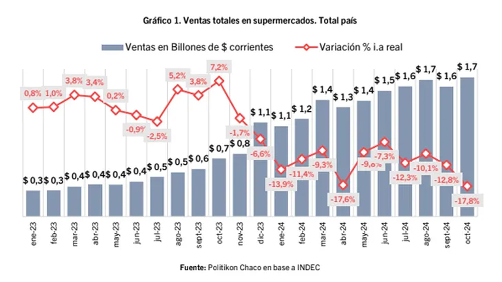 Además, el consumo en supermercados tuvo su peor caída interanual de la era Milei