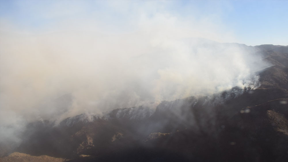 En la parte media superior de la montaña las condiciones de visibilidad son muy reducidas por la intensa presencia de humo, con baja oxigenación disponible en el ambiente para el personal de emergencias.